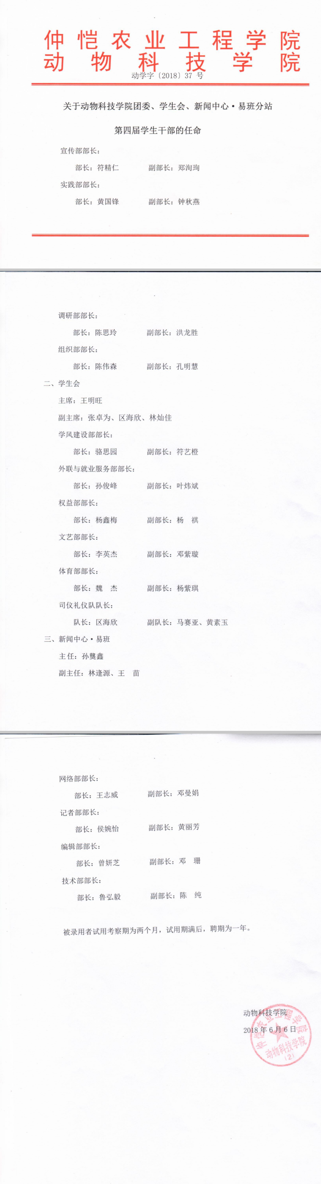 关于伟德bv国际体育团委、学生会、新闻中心·易班分站第四届学生干部的任命的通知