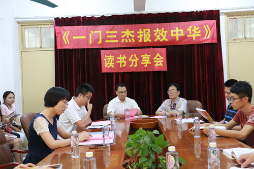 11月19日下午,伟德bv国际体育学生党支部在海珠校区行政楼508会议室举办“中国工程院院士曾溢滔之家《一门三杰 报效中华》读书分享会”。伟德bv国际体育党总支书记曾献尼,教工党支部书记刘文俊博士,学生党支部书记沈洁及动科院学生党员、入党积极分子和主要学生干部等40余人参加活动。分享会特别邀请了本书的编者余德富老师和责任编辑广东人民出版社的余建清老师。
