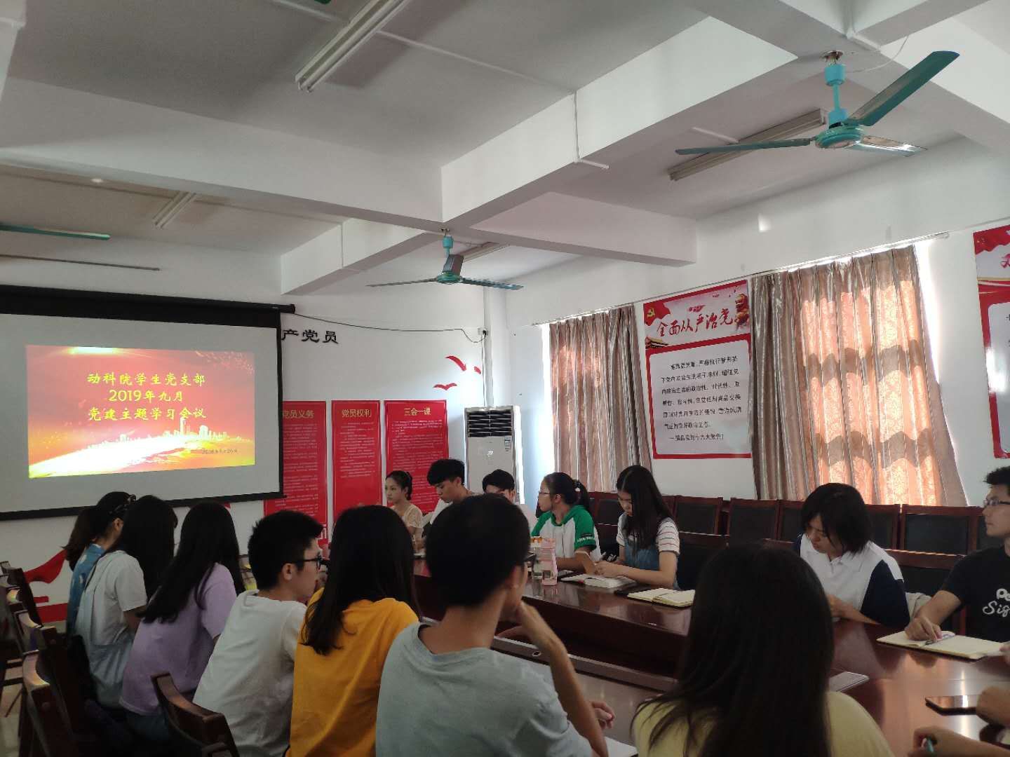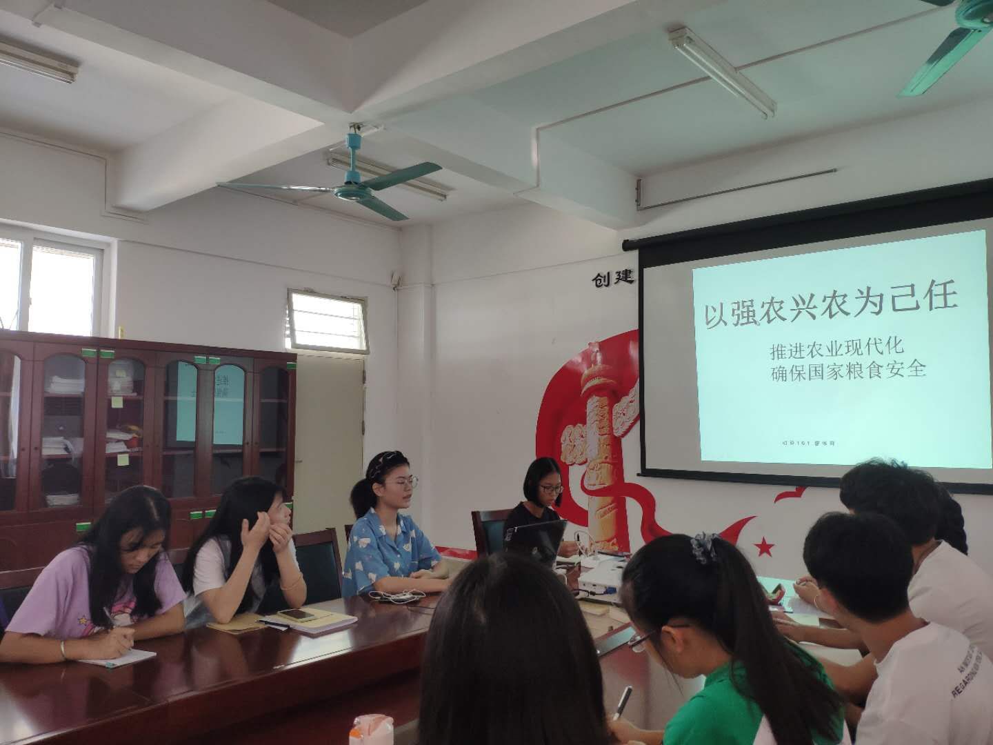 会上,首先由本次会议的主持人学生党员林婉静讲述了此次主题教育活动的背景、意义、目标要求、和重点措施,并播放了新闻联播关于习近平总书记回信寄语“以立德树人为根本,强农兴农为己任”的相关视频,随后对学生党员提出了三点建议:一是学生党员要知农爱农、强农兴农,尊重自己的学科,为国家建设贡献自己的力量;二是要积极学习相关内容,尤其是习近平新时代中国特色社会主义思想、十九大精神、“三农”等相关政策;三是作为学生党员,应该注重农村发展,加大力量发展农村。接着,由学生党员廖伟莉进行关于“以强农兴农为己任”的主题演讲,由学生党员邱小龙进行关于“立足当下,展望未来”的主题演讲。接着,各学生党员对本次会议的主题进行了火热的探讨,发表了自己的看法。