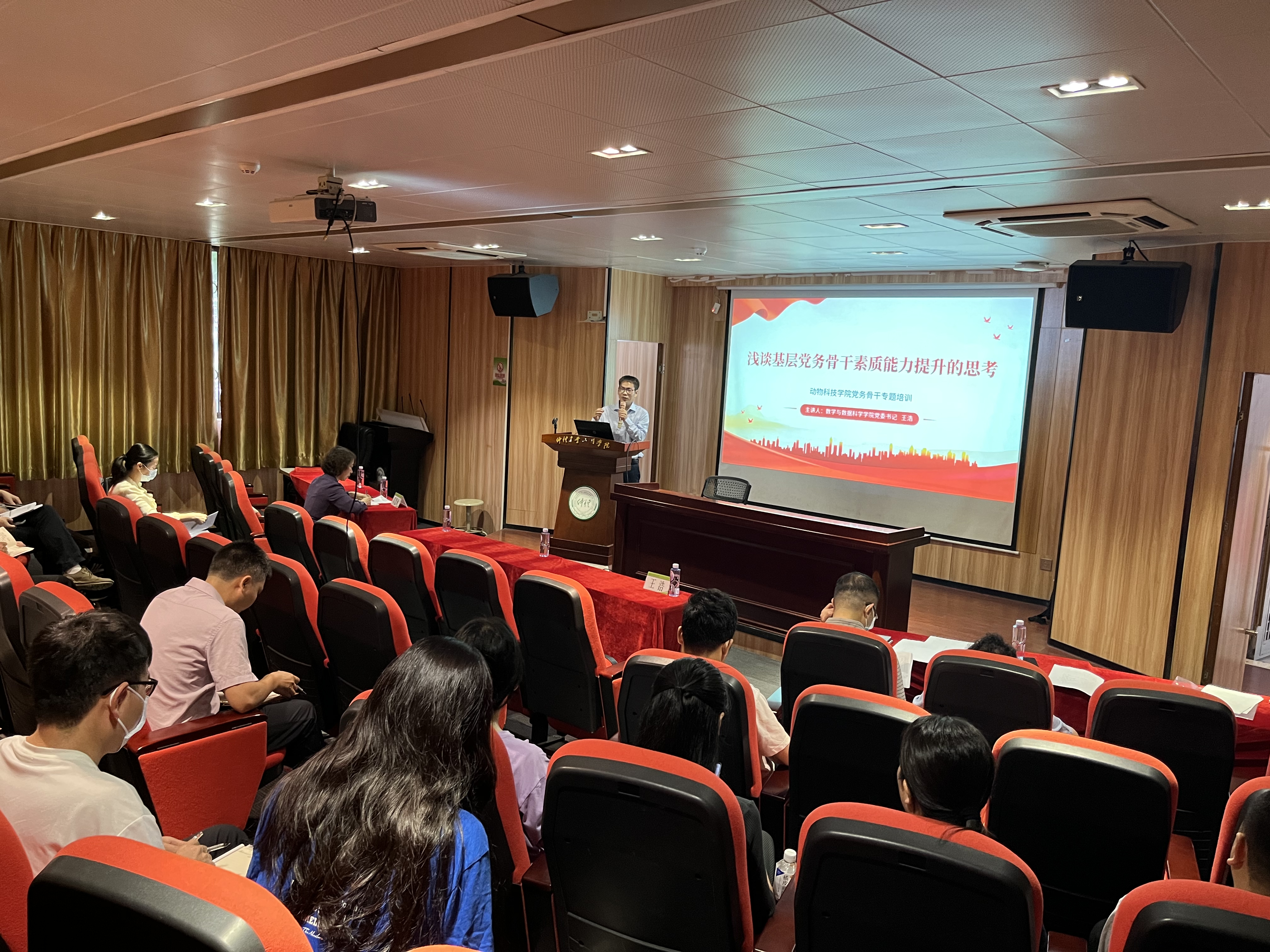 会上,王浩以《浅谈基层党务骨干素质能力提升的思考》为题,围绕基层党建工作的“基本盘”、党建工作特色和亮点以及党建工作的几点思考和做法三个方面进行分享。王浩指出,作为一名基层党务干部必须认真学习《中国共产党章程》《中国共产党支部工作条例(试行)》《中国共产党发展党员工作细则》等党章党规,这些都是党务干部开展工作的行动指南。党务干部要严格按照省委组织部《党支部规范化建设指导标准》和学校党建工作考核指标体系,紧扣基层党支部职能任务,严格标准,扎实推进党支部标准化规范化建设,增强党支部的政治功能和组织功能。他通过归纳党建品牌案例的要素和特点,就如何凝练党建特色和亮点,如何打造具有专业元素、农科特色的党建品牌分享了工作理念及经验做法。