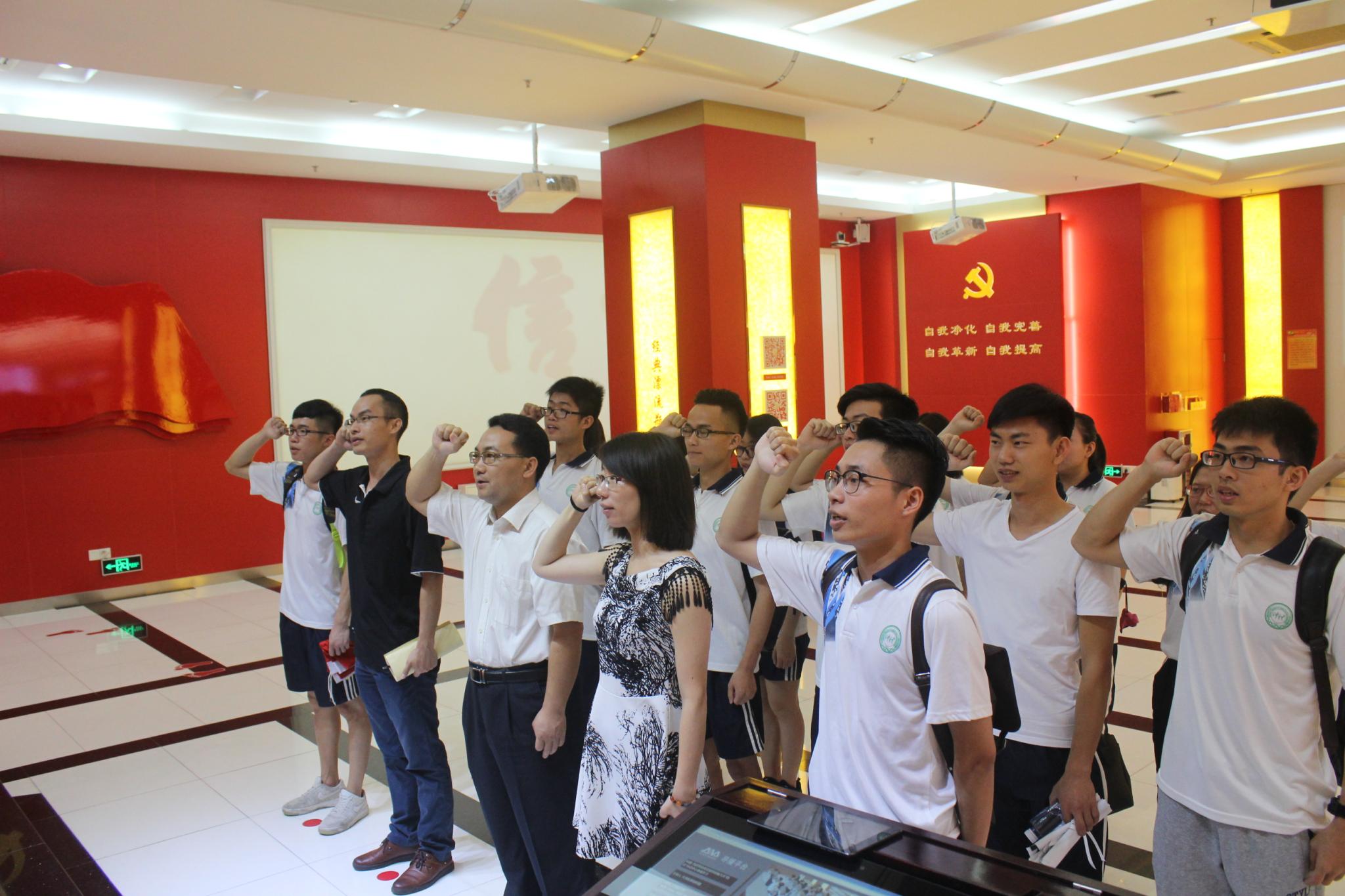 师生们一起观看了介绍中国共产党从成立到十八大召开的视频短片《信仰》,再次学习了党史。然后听解说员逐一介绍了智慧党建的详细项目,包括:拥有实时感知、互联互通、智能分析等14项功能的智慧党建网络平台,实现基层党建工作“一机通、一屏通、一包通”;“两新”组织智慧党建示范基地建设、智慧社区建设等6个培育项目。智慧城的基层党组织二维码长廊、党建电子书吧、“四自”加油站(资料下载库)、“一包通”展示柜、即时出现在“智慧党建平台”上的我支部参观学习情景等,都给大家留下了深刻的印象。最后,全体党员在实时同步电子展示屏前,举行了庄严的“重温入党誓词”仪式。