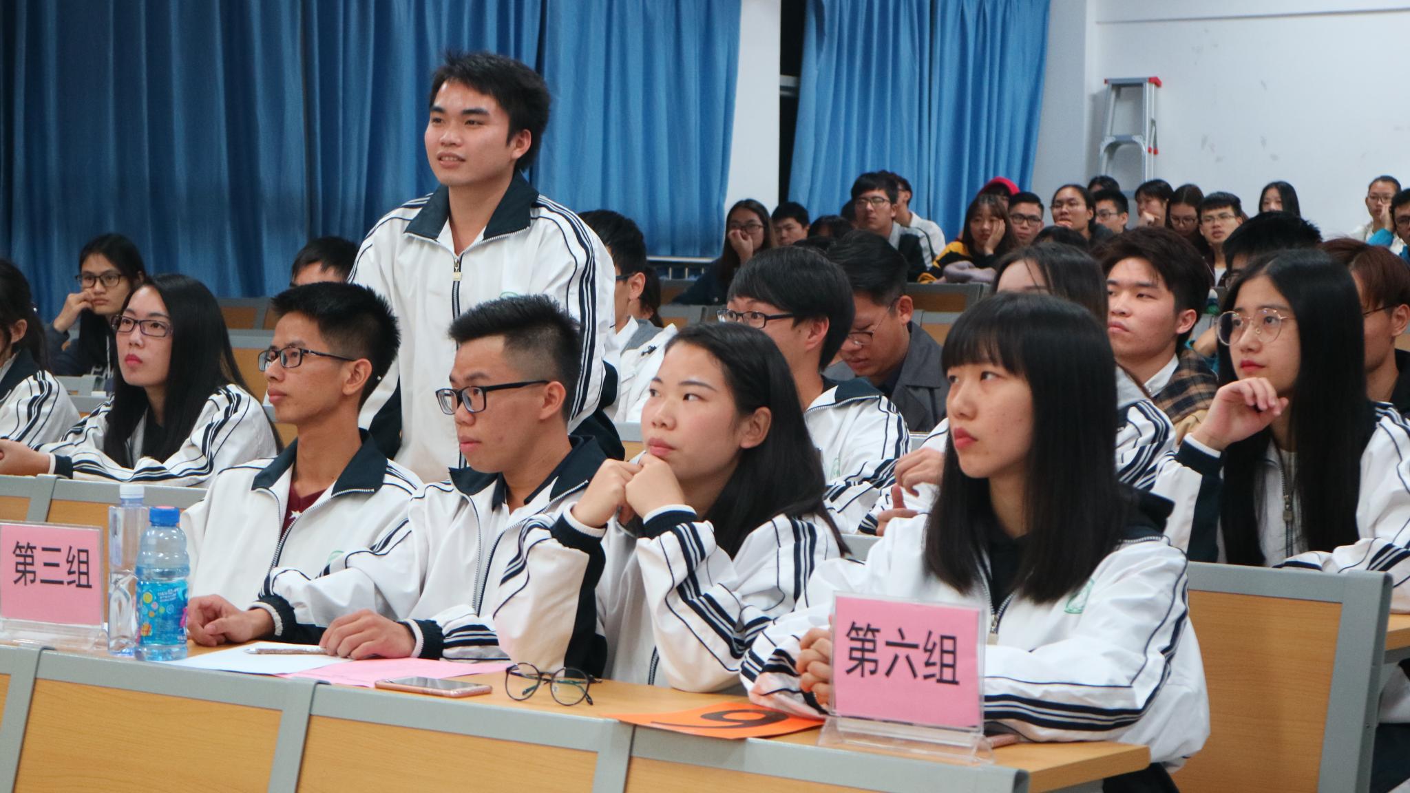 全体起立奏唱团歌,比赛正式拉开帷幕。第一个环节——十秒作答。第三组和第五组的选手凭借丰富的党团知识略胜一筹。第二环节——速度与激情,选手可以进行抢答。在这一环节中,第二组选手以敏捷的思维后来居上。第三环节——锦囊妙用,各小组可以通过答题闯关的模式来赢得抽取锦囊的机会,各有斩获。第四环节——你们听我说。各个小组依次播放准备的视频,通过屏幕向观众展现选手心中的十九大。第二组的视频从习近平总书记在十九大上的发言联系到日常生活中,引起强烈的共鸣。第五环节——绝地求生,第二组迎难而上,毅然选择了易+难的答题模式,顺利在第五环节夺得高分。