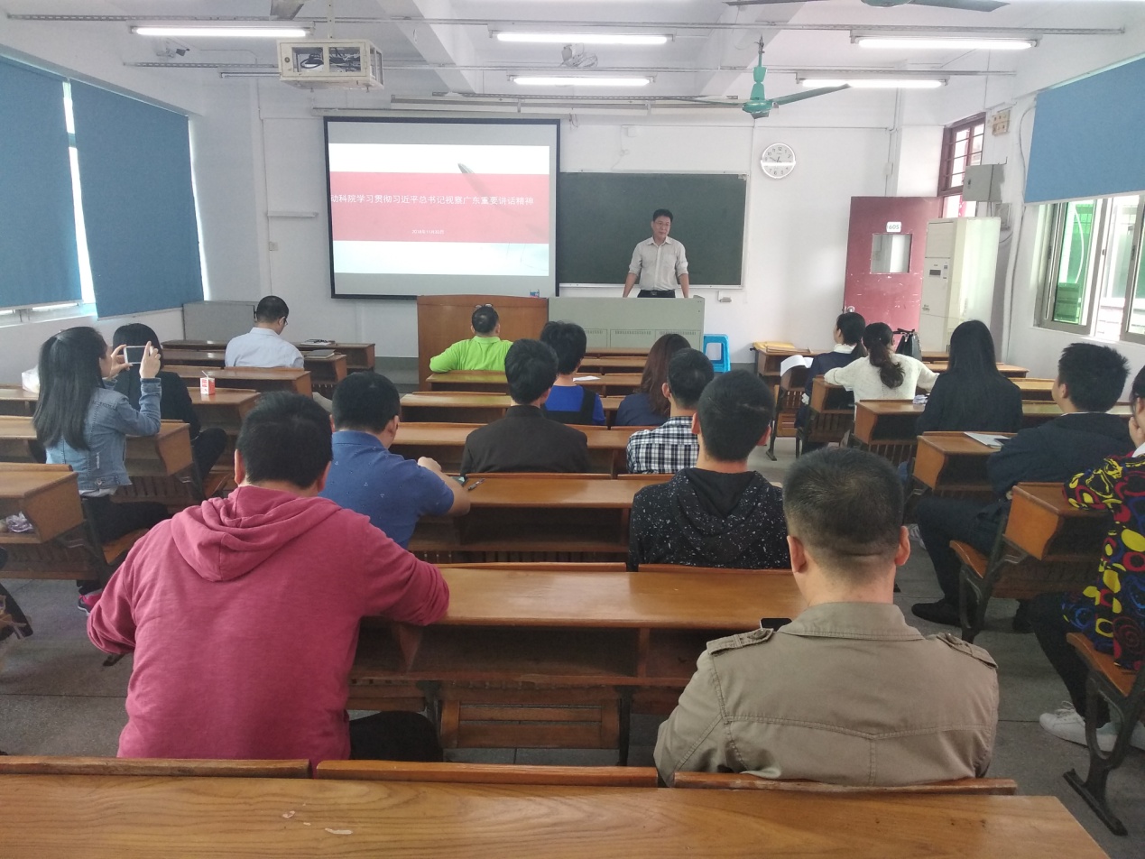 2018年11月30日上午,伟德bv国际体育党总支书记欧坚泉在海珠校区教学楼605为伟德bv国际体育全体教工党员做了《动科院学习贯彻习近平总书记视察广东重要讲话精神》的专题讲座。