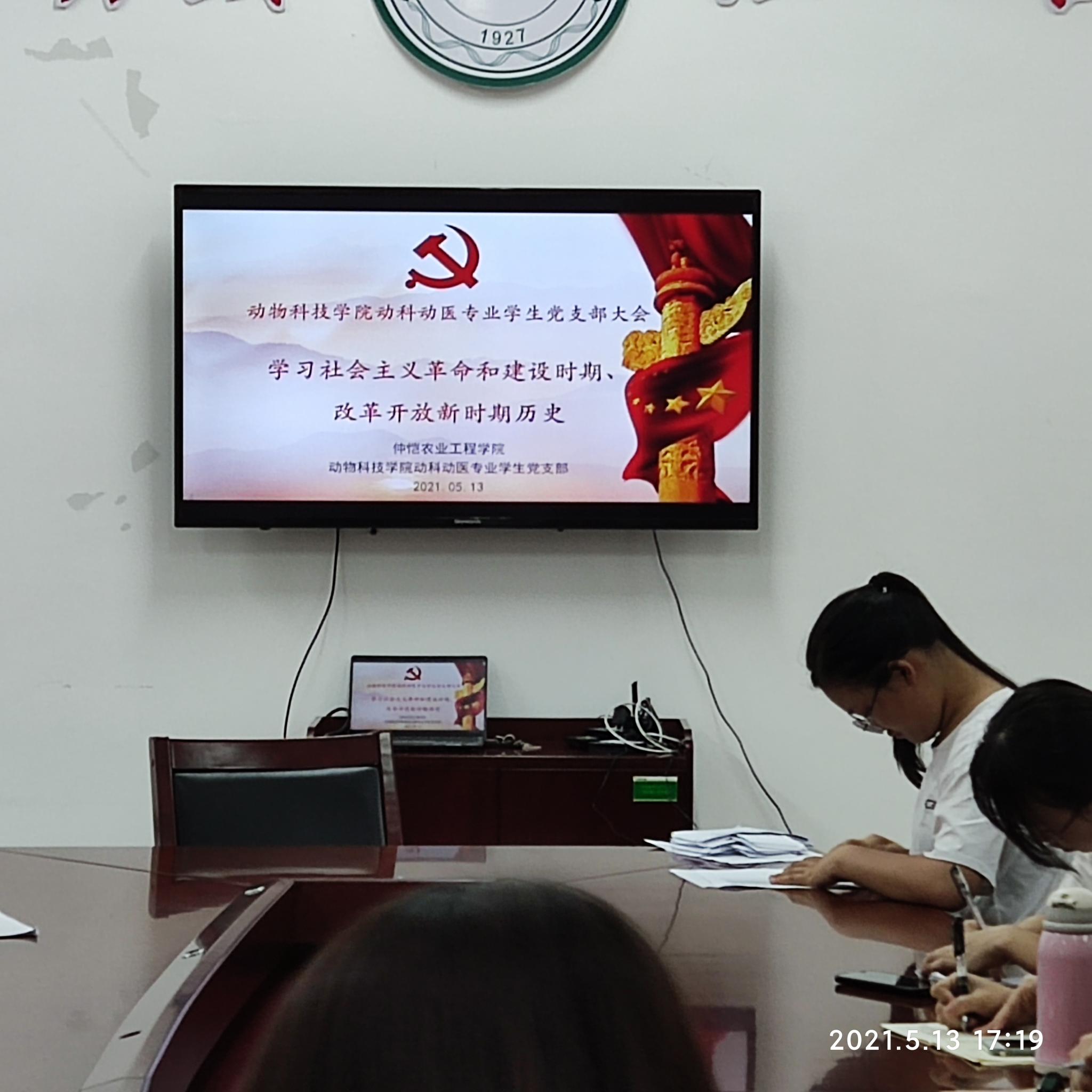 2021年5月13日下午,伟德bv国际体育动科动医学生党支部在刘宇新楼314组织召开支部大会,组织党员学习党史之“社会主义建设的探索和曲折发展”。支部书记许鸿和动科动医专业学生党员参加本次会议。会议由支部书记许鸿讲党课。