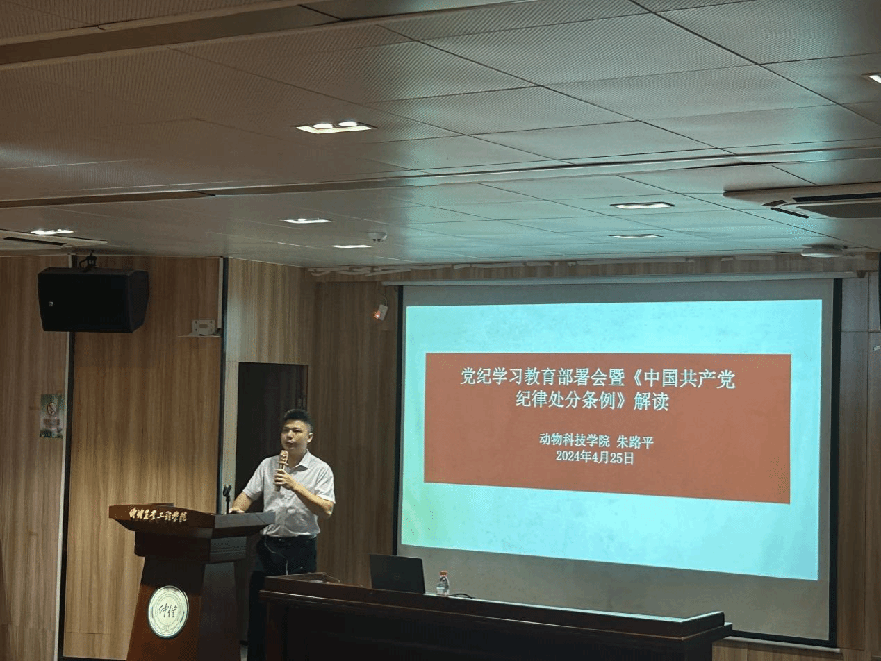 为深入学习贯彻习近平总书记关于党纪学习教育的重要讲话和重要指示精神,传达中共中央办公厅《中共中央办公厅关于在全党开展党纪学习教育的通知》精神及上级党委党纪学习教育有关要求,4月25日,伟德bv国际体育在海珠校区英东楼111召开党纪学习教育动员部署会议暨《中国共产党纪律处分条例》解读专题党课,动科院党委副书记作党纪学习教育部署,并讲授专题党课。