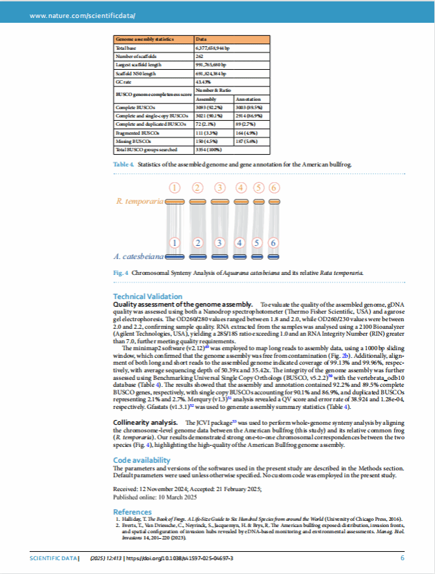 林蠡:开源共享是“后基因组时代”的科研趋势。牛蛙作为两栖动物进化研究的代表物种,其基因组数据可为脊椎动物陆生适应机制提供线索。国内外同行可基于此数据开展病原互作、抗逆基因挖掘等研究,避免重复投入。在产业端,基因信息将推动良种标准的制定、疾病快速检测技术开发,助力牛蛙养殖提质增效。