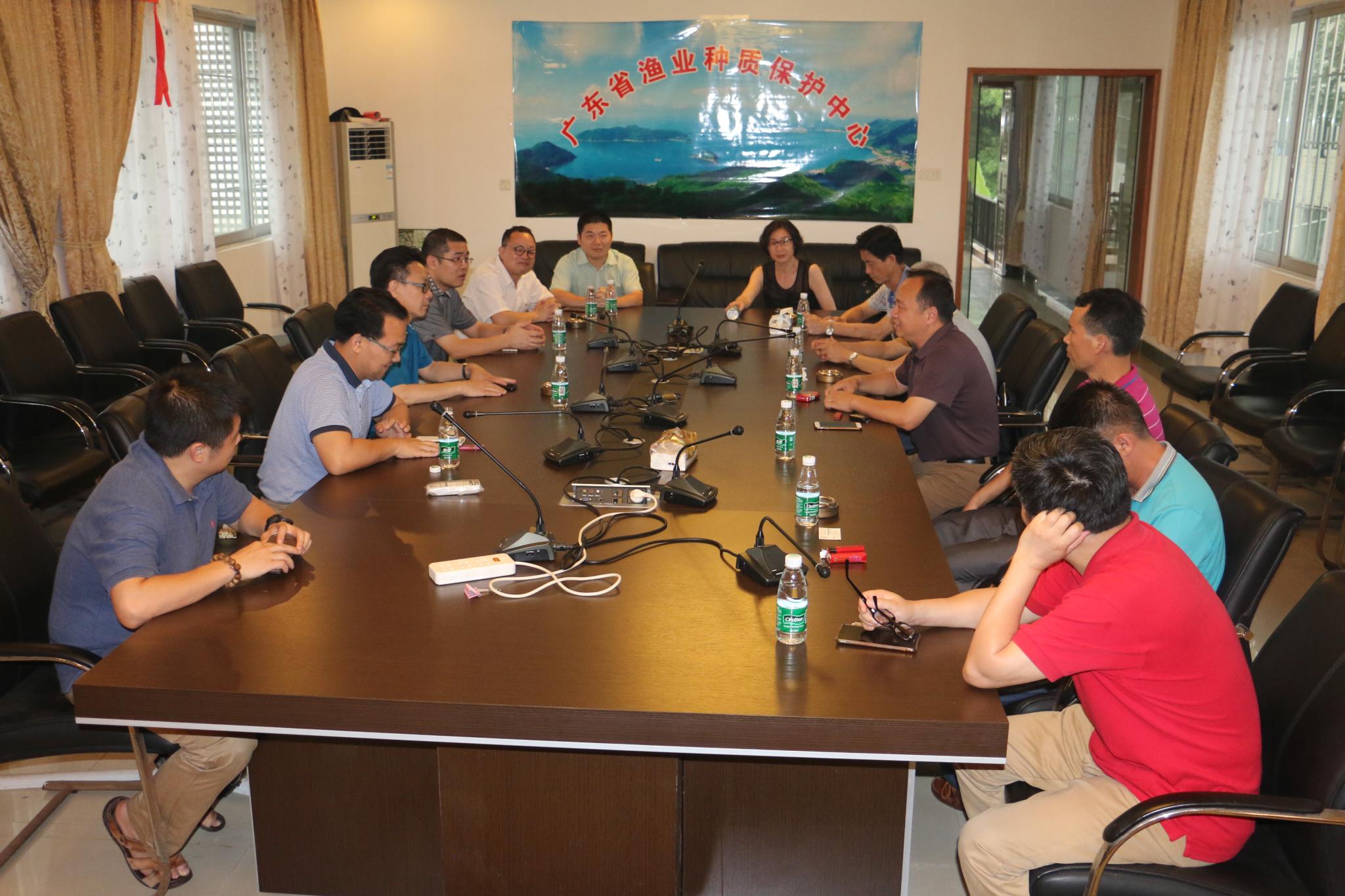 双方在渔业中心会议室举行了座谈会。刘付永忠表示,渔业中心承担渔业种质资源的保种、引种及相关科研工作,在水产名优品种的人工繁殖、绿色健康高效养殖技术、现代养殖模式的研究方面有较强的技术水平。现在能够与高校紧密融合、产学研有效对接,将有利于将双方独特的设备、人才、信息资源整合在一起,有利于双方共同发展,促进科研和生产均上水平、上层次、出成果,有利于推动广东省渔业产业化的进程,为地方经济发展做出更大的贡献。