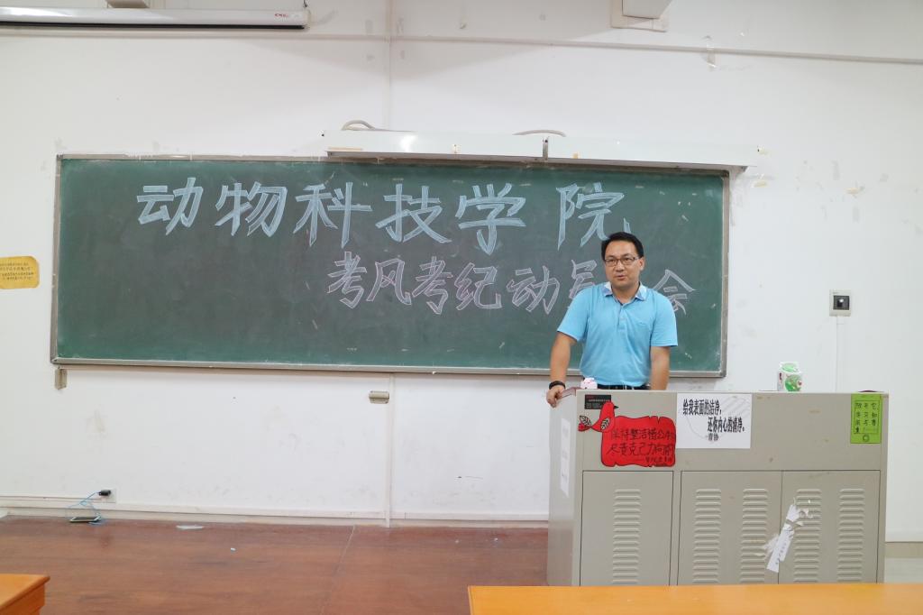 6月14日晚上,伟德bv国际体育在白云校区B202教室召开考风考纪教育动员大会。党总支书记曾献尼老师出席大会。辅导员沈洁老师主持。