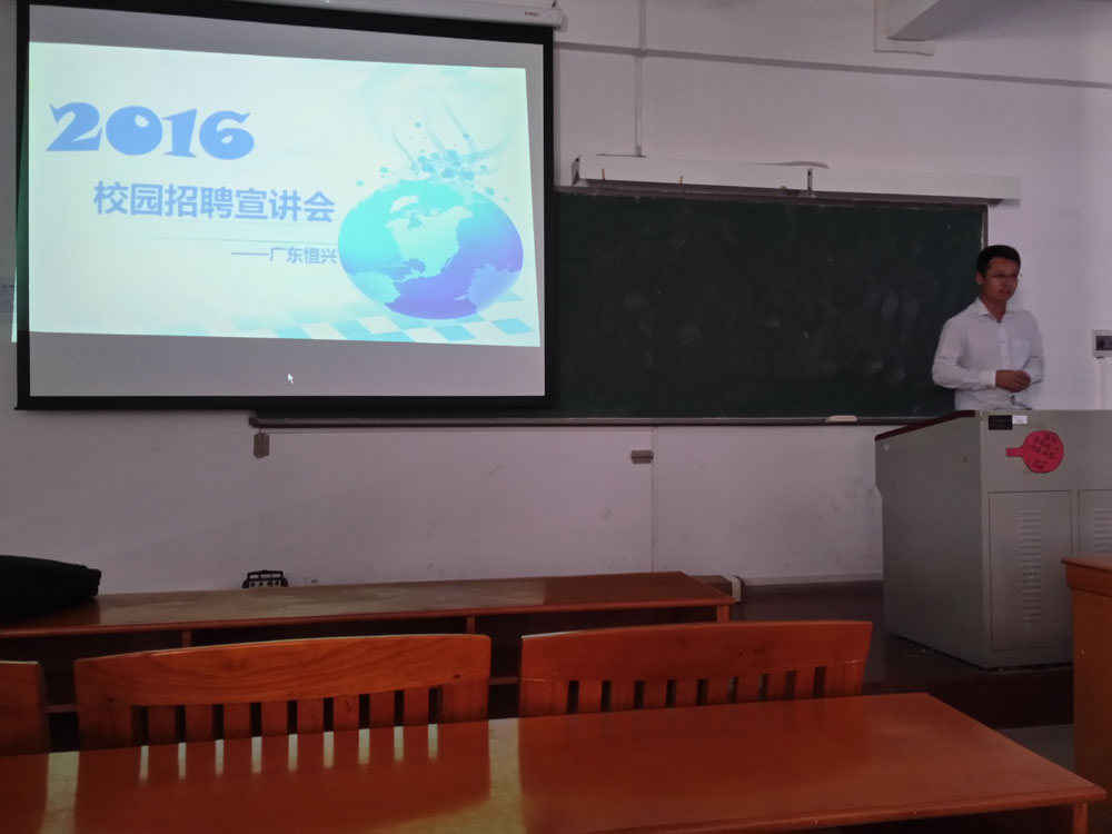 会上福志峰经理通过播放公司简介视频,简述恒兴公司的企业概况,结合ppt向同学们展开对恒兴公司的详细介绍。在学生提问环节中,同学们积极提问,福经理及其团队热心为同学解答。