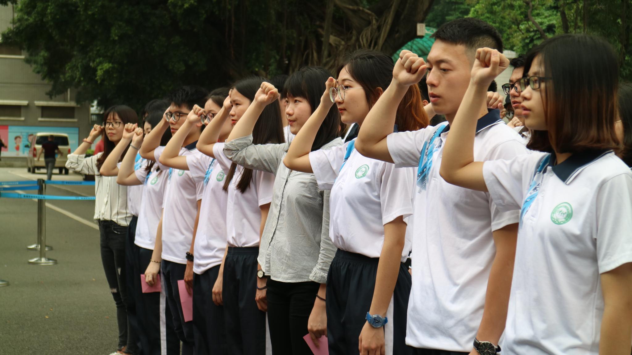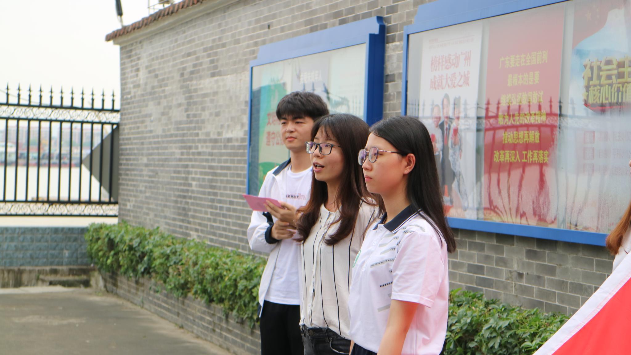 在黄埔军校,讲解员带领学生们参观了黄埔军校本部的会议室、校长办公室、主任办公室以及学生宿舍等地,近距离感受革命先烈的生活环境和爱国主义精神。在黄埔军校门前,全体党员和团员在黄埔军校旧址的党旗和团旗下高举右手,重温入党、入团誓词,表明自己不忘初心,全心全意建设祖国的决心。