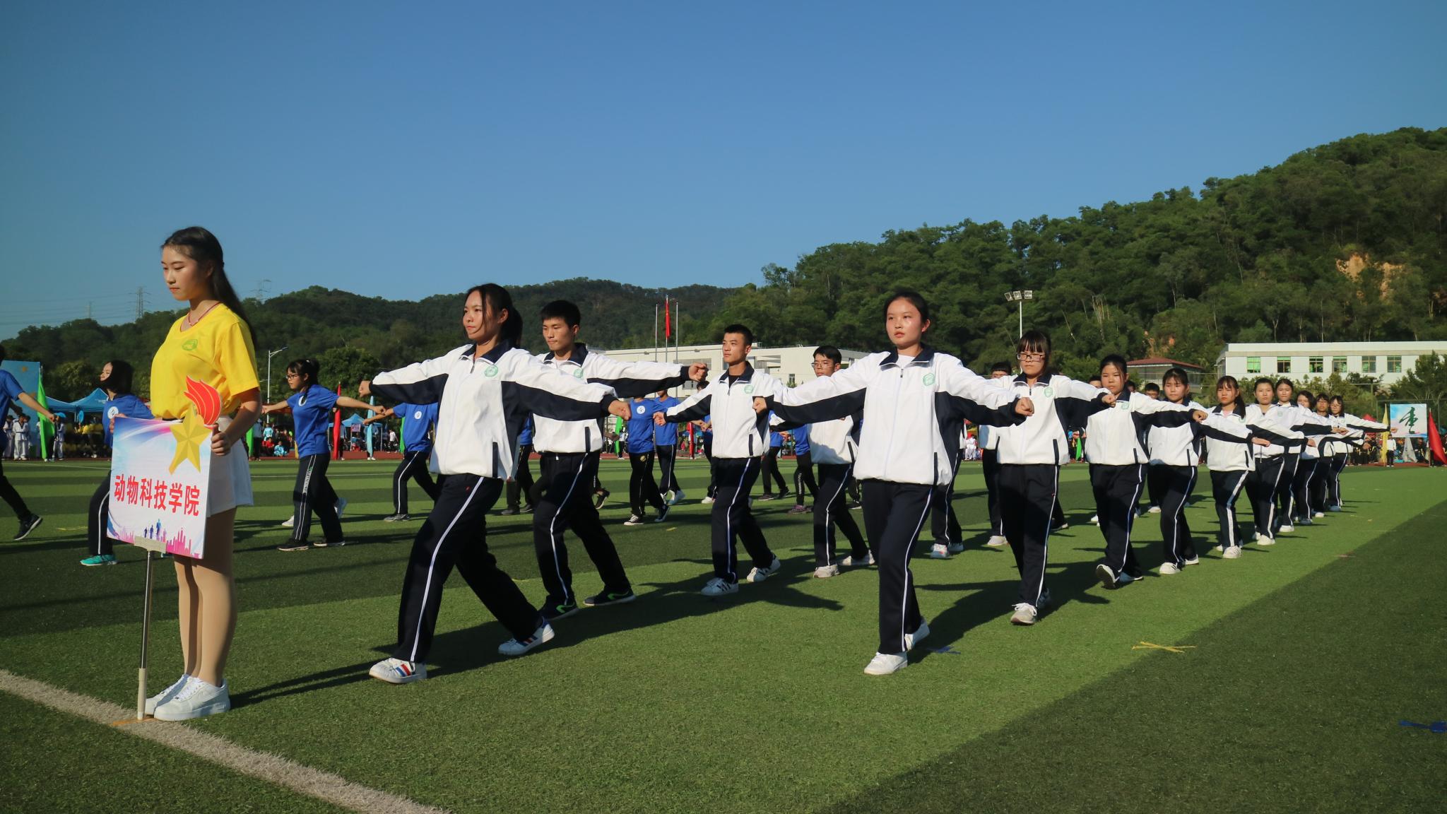 开幕式上,程萍校长等各领导先后致辞,表达了发扬体育精神对仲恺学子们的重要性以及对仲恺学子们在此次运动会取得佳绩的殷切期望。在第九套广播体操比赛结束以后,校领导正式宣布伟德bv国际体育第26届校运会开始