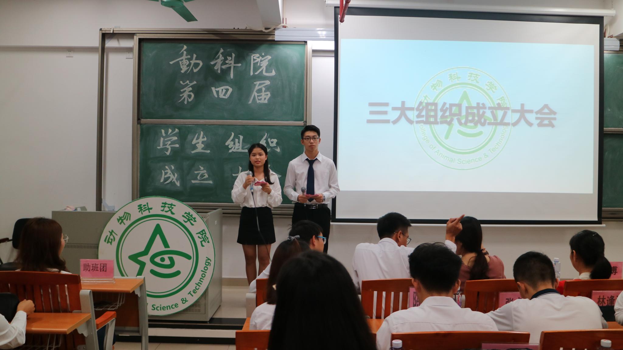 10月21日晚19点40分,伟德bv国际体育第四届学生组织成立大会在D栋教学楼508顺利举行。动科院党总支副书记朱路平、辅导员许鸿、李博及院团委、学生会、新闻中心﹒易班分站、秘书处、助班团的全体新老干部出席本次会议。