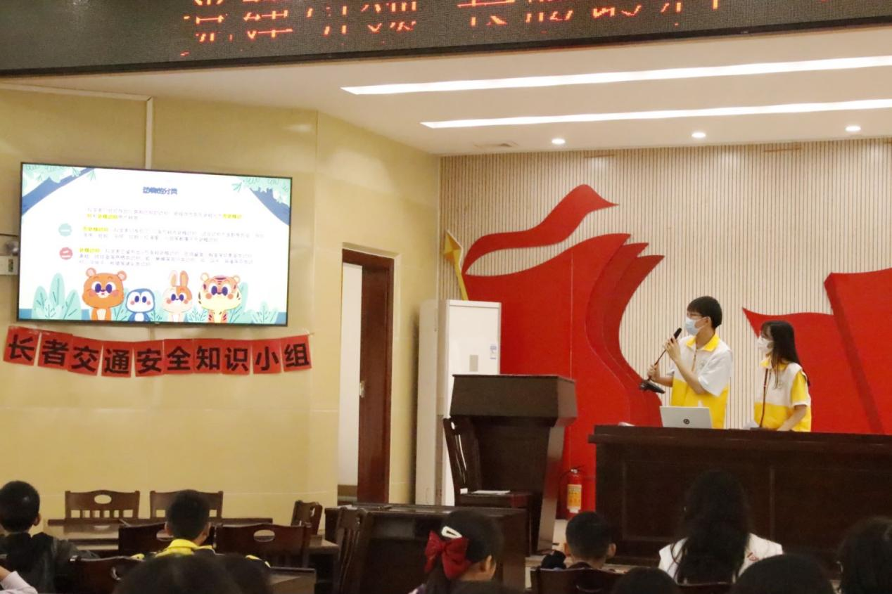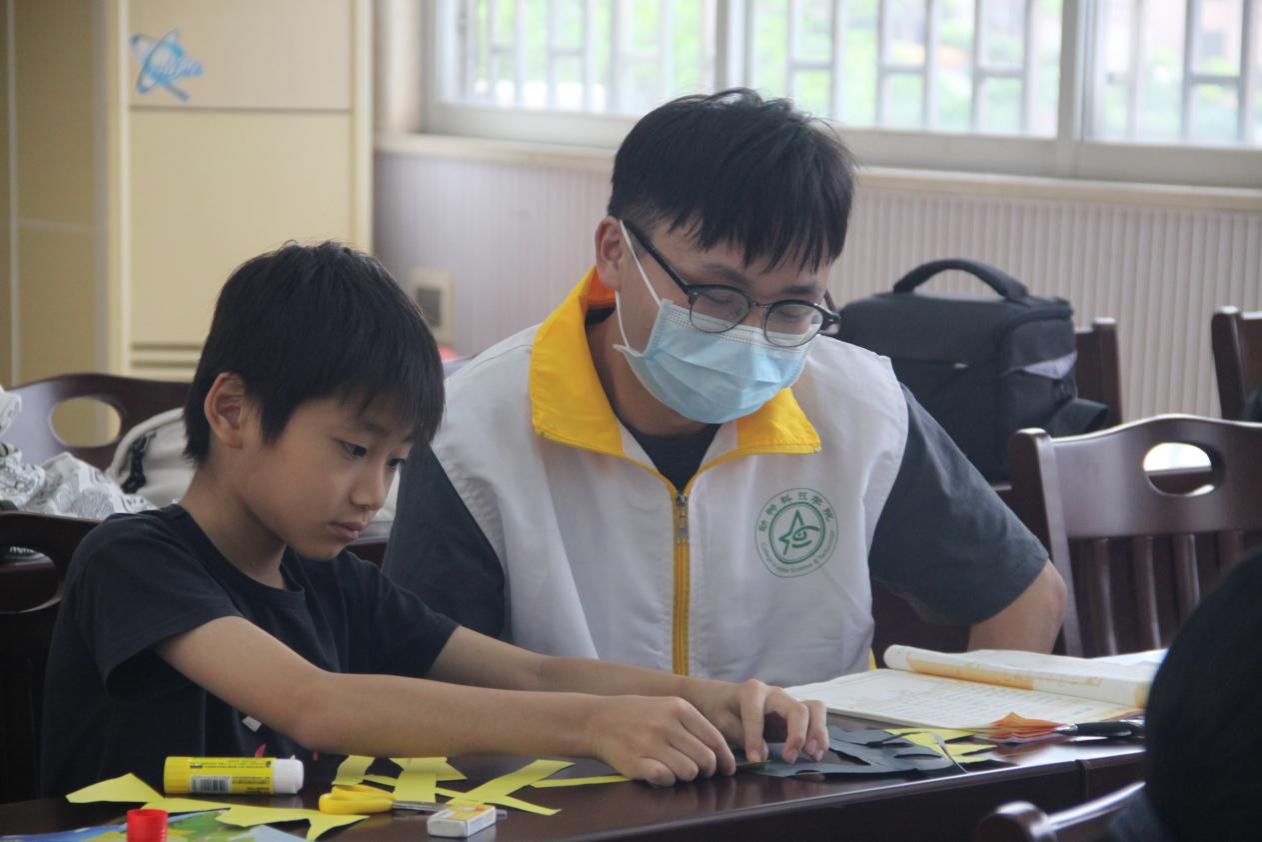 作业辅导结束后,特色课堂活动正式展开。水产211班曾宪梓和动医222连晓婷作为“老师”为小朋友们上课,带领小朋友们认识小动物,了解小动物们的习性。期间,小朋友们积极回应老师提出的问题,十分活跃,课堂氛围良好。