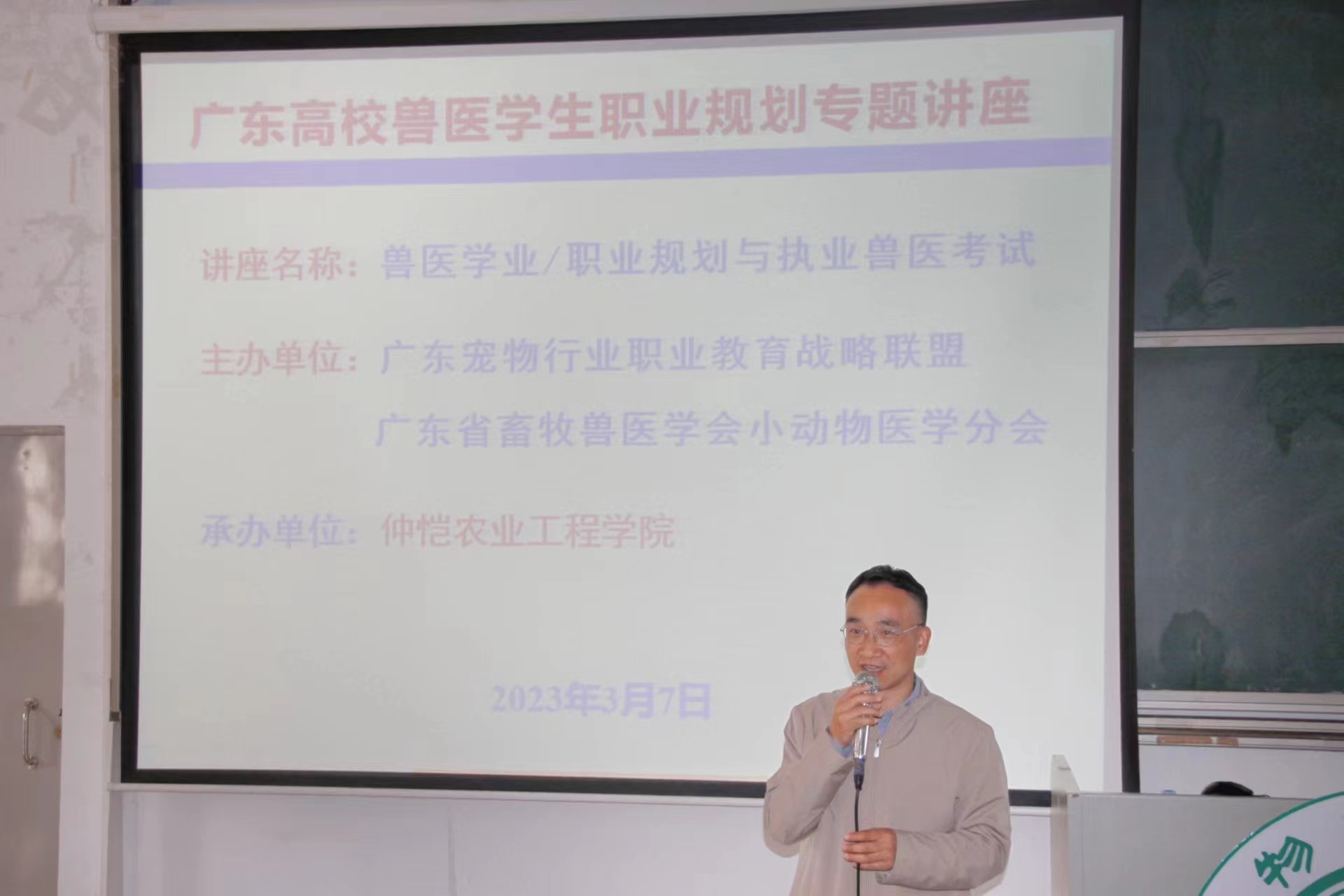 3 月 7 日下午,华南农业大学教授、博士生导师、中国畜牧兽医学会小动物医学分会副秘书长、广东省畜牧兽医学会小动物医学分会会长石达友教授及企业代表一行应邀到伟德bv国际体育作兽医学生职业规划与执业兽医考试专题讲座。