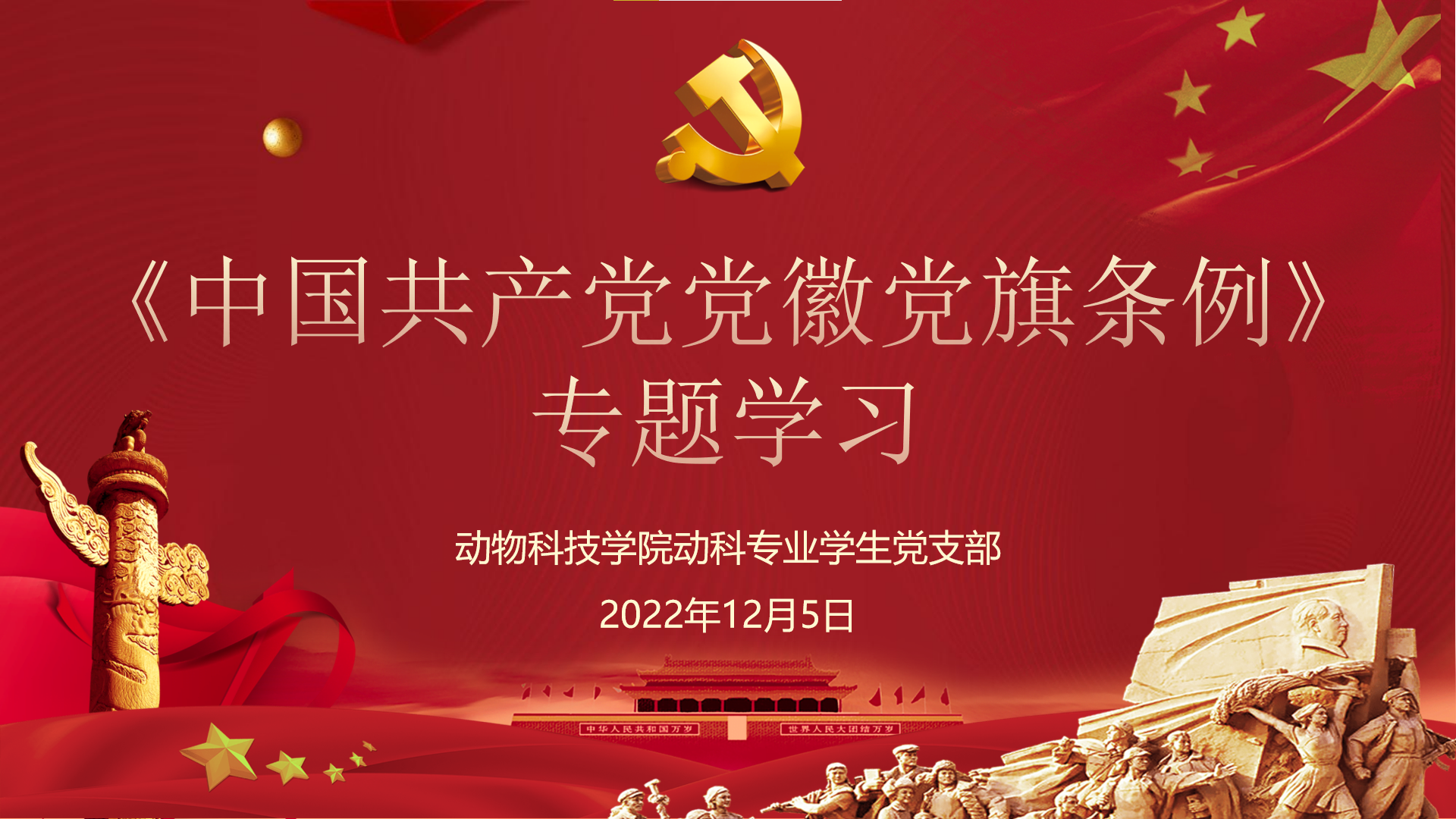 为传承红色基因,筑牢信仰之基,进一步引导广大党员正确认识党徽党旗的深刻内涵和工作要求,12月5日,伟德bv国际体育动科专业学生党支部组织开展《中国共产党党徽党旗条例》专题学习会。学习会在生命科学大楼B座201线下开展,同时以直播方式云端传播,伟德bv国际体育动科专业学生党员、发展对象、入党积极分子聆听宣讲。
