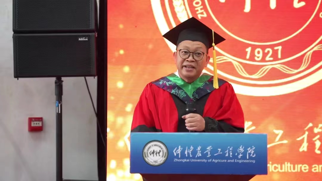 接着周萌向即将踏上新征程的毕业生们表示最热烈的祝贺,并提出了殷切的希望: 一是把握方向,勇敢前行,人无志而不立,只有树立理想和目标,才能收获诗和远方;二是心中有国,牢记使命,要有家国情怀和担当,把国家的利益和个人利益相结合,将小我融入大我;三是抓住机遇,勇于挑战,只有不怕困难迎难而上,才能获得成功;四是赓续仲恺精神,发扬仲恺精神。