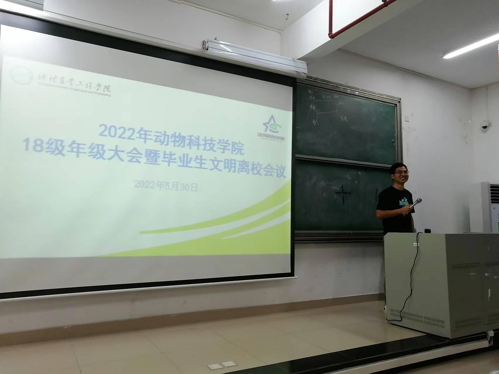 又是一年毕业季,为切实做好毕业生文明离校服务工作,充分展示大学生文明、守纪、诚信、爱校的良好形象,不断激发毕业生的自豪感、荣誉感和责任感,伟德bv国际体育于2022年5月30日晚上7:30在D栋707开展伟德bv国际体育18级年级大会,出席本次会议有伟德bv国际体育党委副书记朱路平,辅导员郑晓文、赵江、关敏以及全体2018级学生。
