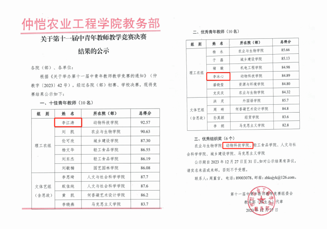 12月14日,伟德bv国际体育第十一届中青年教师教学竞赛决赛在白云校区学术报告厅顺利举行,经过激烈角逐,伟德官网教师李江涛斩获十佳青年教师,李冰心斩获优秀青年教师,伟德bv国际体育荣获优秀组织奖。