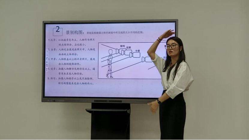 随后,辅导员杨崧作《新闻照片拍摄和视频制作》专题培训,她围绕照片构图的基本方法、光影与色彩的运用、新闻照片拍摄的要点、视频的分类及制作要求等方面,结合理论和案例讲解了新闻照片拍摄和视频制作的方法和技巧。