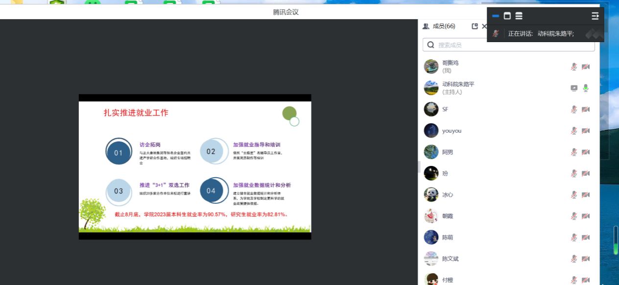 会上,朱路平结合学校规划目标和工作重点,对学院上半年各项工作进行了回顾和总结,梳理介绍了学院下半年的工作重点,并就做好新学期工作提出了要求。她指出学院的发展壮大离不开全体教职工共同努力,鼓励全体教职工以主题教育生动成效促进工作提升,将个人职业发展与学校发展相结合,凝心聚力为实现学校“申博”“更名”“十四五”规划美好蓝图贡献动科力量。