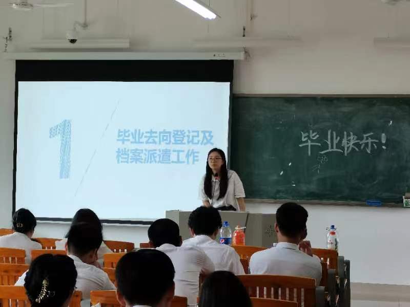 关敏首先从“就业工作日程”“电子协议书及相关说明”“毕业去向登记”“档案材料”“档案派遣”五个方面对毕业生进行就业派遣及就业系统进行了培训。接着,她对毕业生进行就业安全教育,进一步增强毕业生的安全意识和自我防范能力。最后,她对尚未就业的同学提供建议,希望同学们可以在离校之前抓住机会,不要眼高手低,寻找到符合自身实际条件的工作单位。