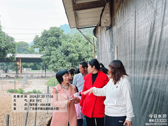 2024年1月20-21日伟德bv国际体育研究生部赵向华老师和轻工食品学院党委副书记吉燕老师莅临广东饶平狮头鹅科技小院调研指导工作,小院首席专家付晶教授、驻院研究生及小院建设依托单位代表等陪同调研。